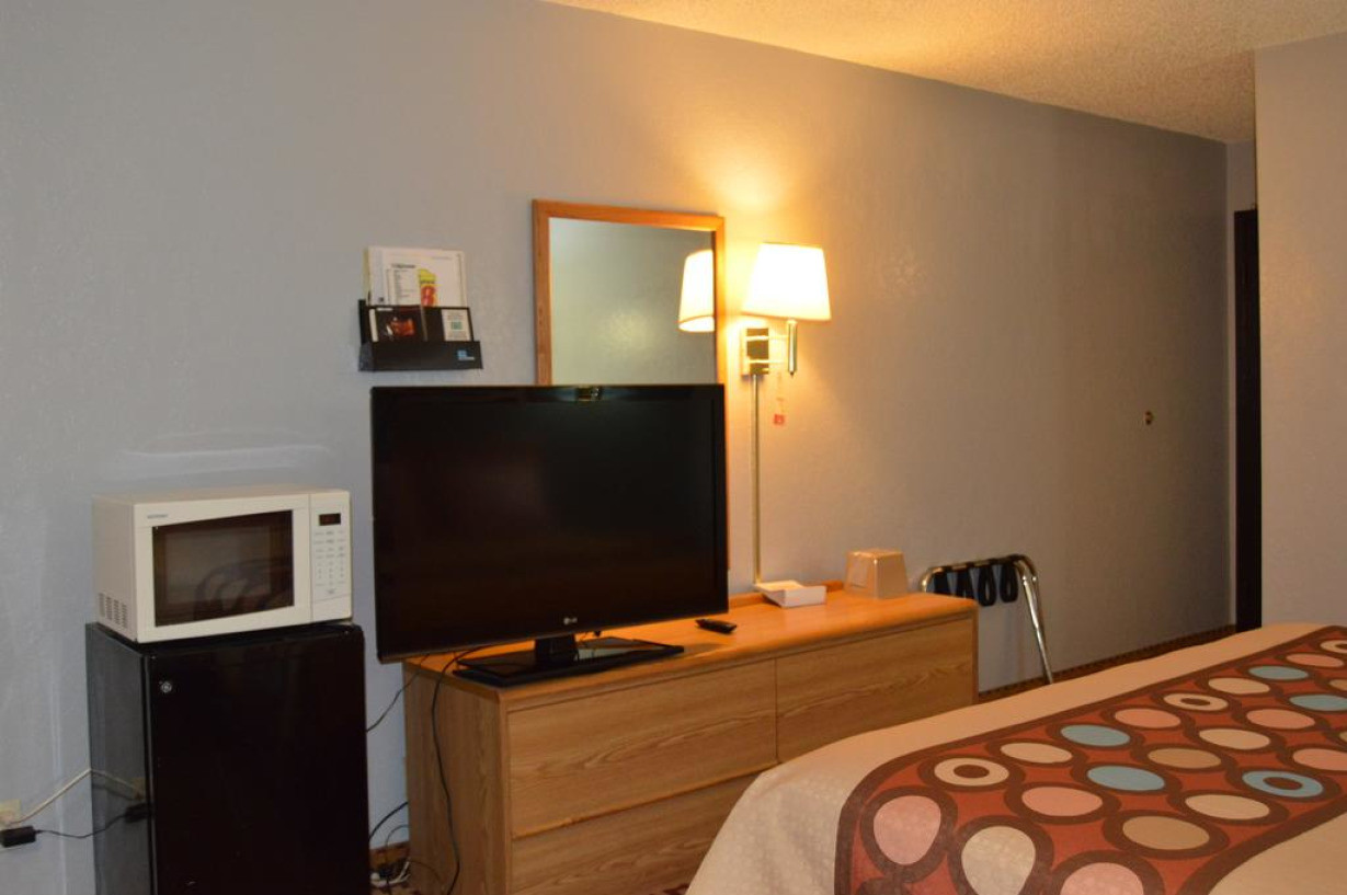 Номер с телевизором с плоским экраном, микроволновой печью и холодильником
