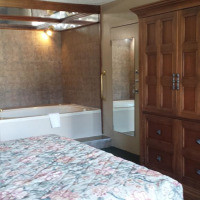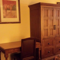 В номере имеются гидромассажная ванна, микроволновая печь, небольшой холодильник. Проведено кабельное телевидение