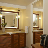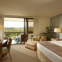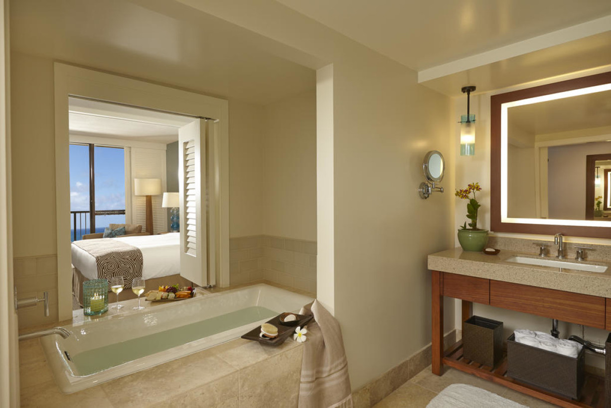 Номер с видом на океан, оформленный в современном стиле с тонкими Гавайскими акцентами и приспособленный для гостей с ограниченными физическими возможностями. В нем есть кофеварка и ванная комната с двойным туалетным столиком, феном и душем