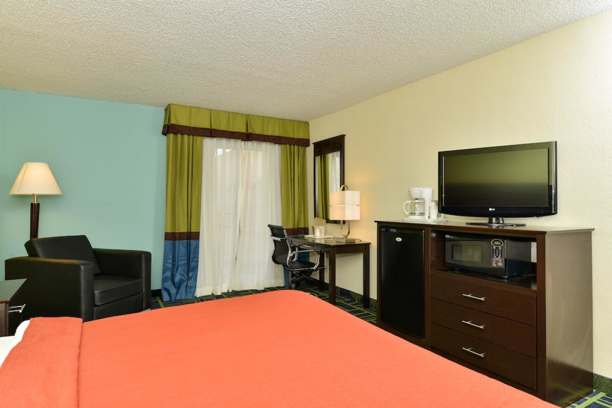 В номере к вашим услугам телевизор с кабельными каналами, кофеварка и гладильные принадлежности
