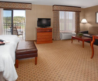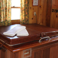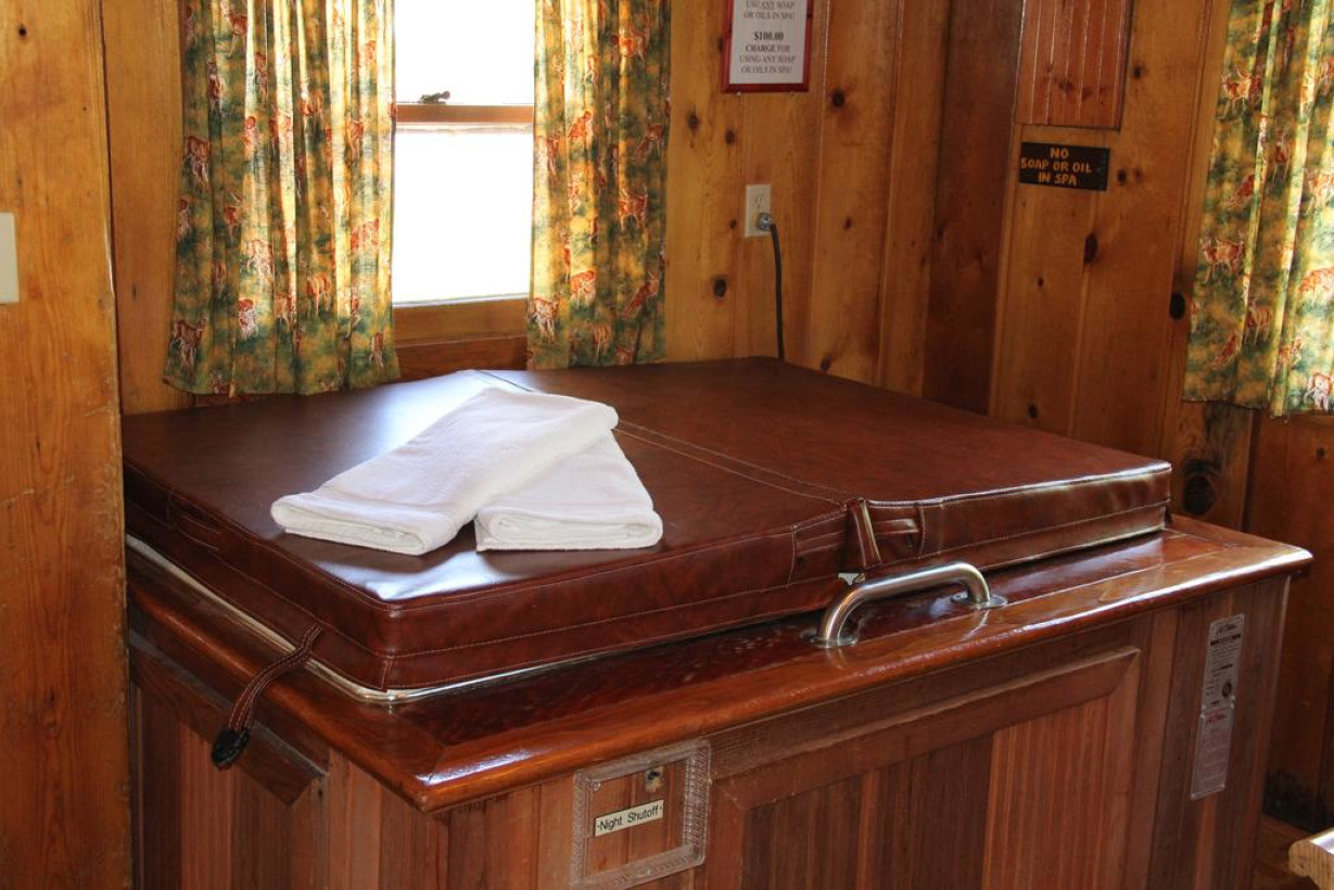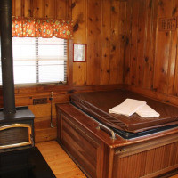 Коттедж с гидромассажной ванной, патио и отдельным входом (Коттедж № 10). Мини-кухня оснащена холодильником, плитой и микроволновой печью. В числе прочих удобств камин
