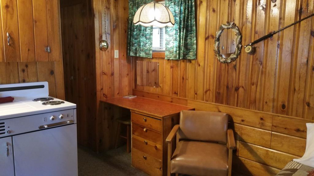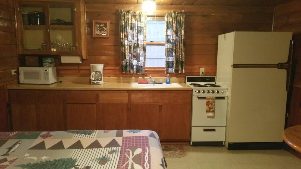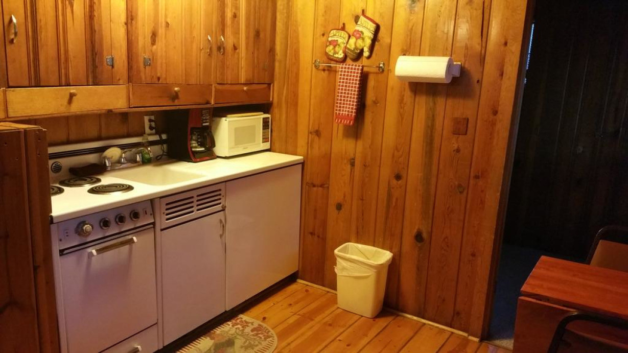 Коттедж с патио, отдельным входом и камином (коттедж № 4). На кухне установлены плита и микроволновая печь, а также предоставляются принадлежности для кофе