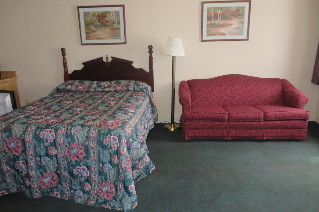 Номер с телевизором с кабельными каналами, включая каналы HBO, диваном-кроватью, микроволновой печью, холодильником и кофемашиной