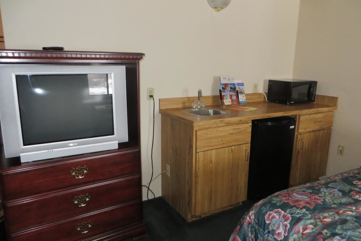 Номер с телевизором с кабельными каналами, включая каналы HBO, микроволновой печью, холодильником и кофемашиной