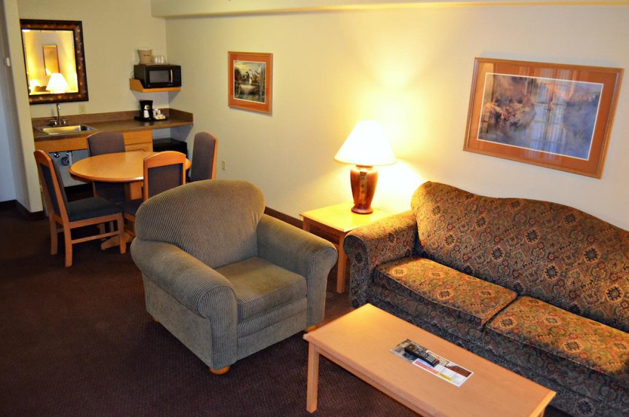Этот отель расположен в городе Рассел, штат Канзас, в 30 минутах езды от озера Уилсон. К услугам гостей крытый бассейн, гидромассажная ванна, сауна, бесплатный WiFi и ежедневный континентальный завтрак с омлетом.Все номера отеля Fossil Creek оснащены телевизором с кабельными каналами, кофеваркой, микроволновой печью и холодильником.В распоряжении гостей отеля Fossil Creek & Suites фитнес-центр, торговые автоматы, круглосуточная стойка регистрации и бесплатная парковка.Расстояние до муниципального поля для гольфа Russell составляет 8 км, а до межштатной автомагистрали 70 можно доехать за 5 минут.