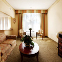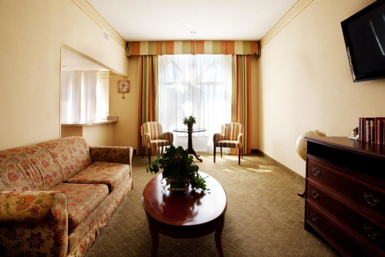 В этом люксе есть микроволновая печь, небольшой холодильник и гостиный уголок с диваном-кроватью