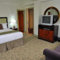 Номер оформлен в ретро стиле ар-деко и располагает рабочим столом, гостиной зоной и ванной комнатой с феном и бесплатными туалетно-косметическими принадлежностями
