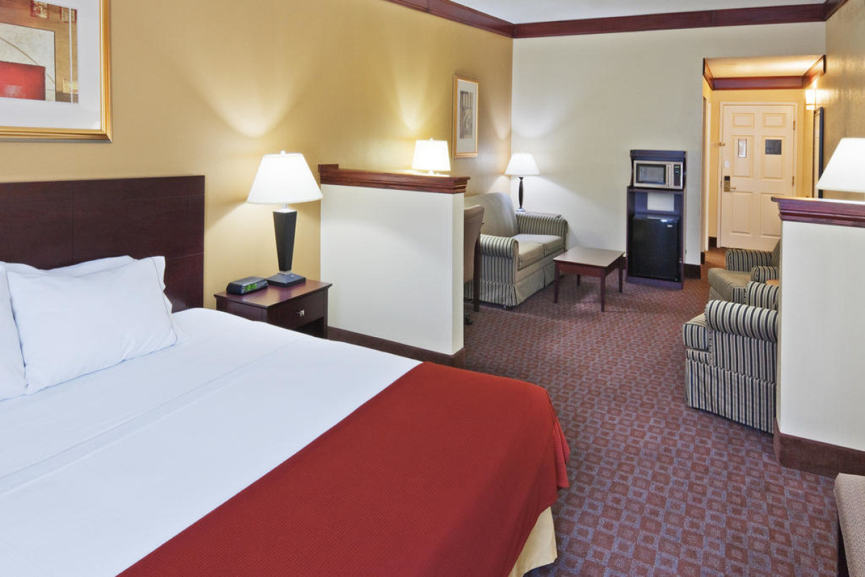 Люкс с отдельной гостиной, телевизором с кабельными каналами, микроволновой печью, холодильником и принадлежностями для кофе