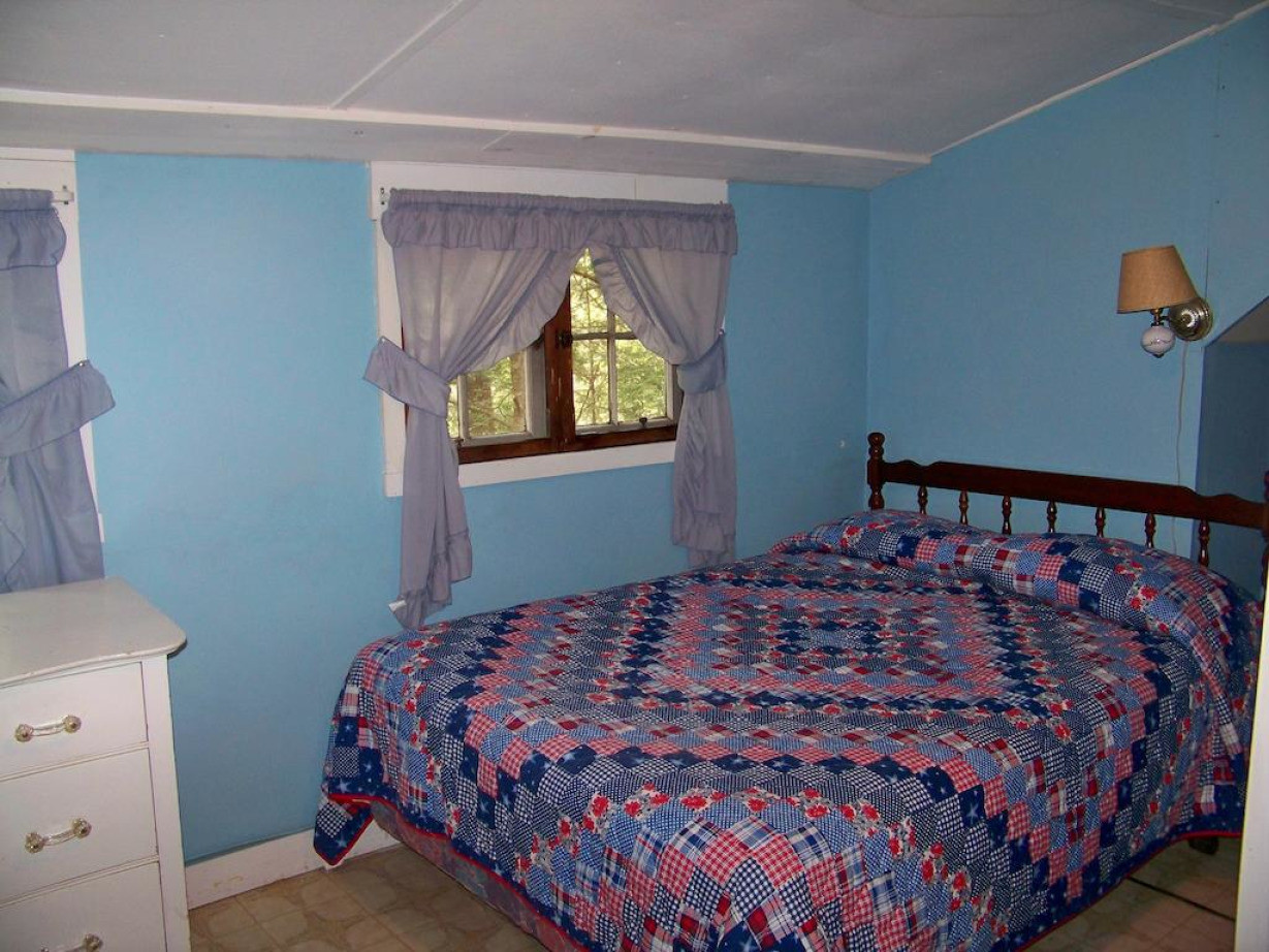 В построенном в 1965 году деревянном одноэтажном коттедже с высоким потолком установлены облицованный камнем камин, а также конвекторный обогреватель. В сарае на открытом воздухе приготовлены бесплатные дрова. В этом уютном коттедже обустроены небольшая, полностью оборудованная кухня, гостиная, обеденная зона и ванная комната с душем. К услугам гостей 2 спальни: 1 — с 1 двуспальной кроватью, другая — с 2 односпальными кроватями, предоставляются полотенца и постельное белье. Среди прочих удобств — застекленное крыльцо с видом на пруд, угольный мангал и стол для пикника на открытом воздухе. В коттедже действует бесплатный Wi-Fi