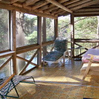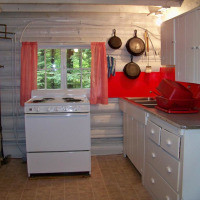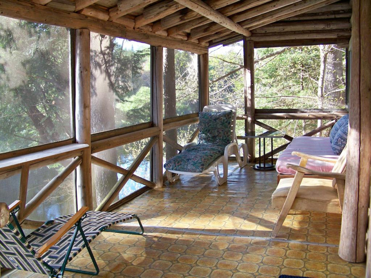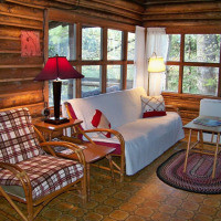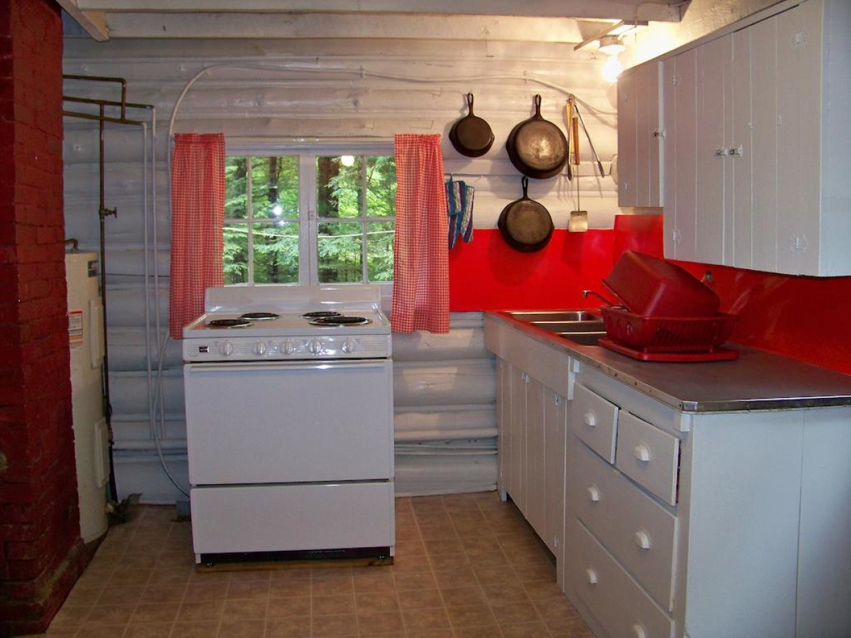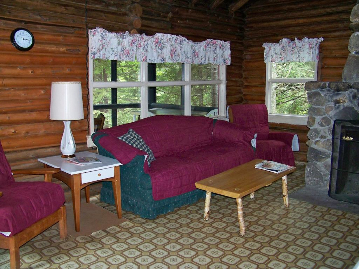 В построенном в 1945 году и расширенном в начале 50-х годов одноэтажном коттедже для отопления используются дровяная печь и облицованный камнем камин. В сарае на открытом воздухе приготовлены бесплатные дрова. В коттедже есть полностью оборудованная кухня, гостиная, обеденная зона и ванная комната с душем, в каждой из 2 спален установлены 2 односпальные кровати. Гостям предоставляются полотенца и постельное белье. Среди прочих удобств — застекленное крыльцо с видом на реку в районе речных порогов, угольный мангал и стол для пикника на открытом воздухе. Обратите внимание, что в этом коттедже нет Wi-Fi