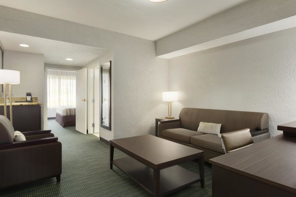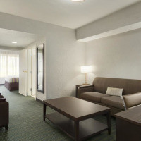 В люксе имеется отдельная гостиная зона с телевизором с плоским экраном. В числе прочих удобств микроволновая печь, холодильник и кофемашина