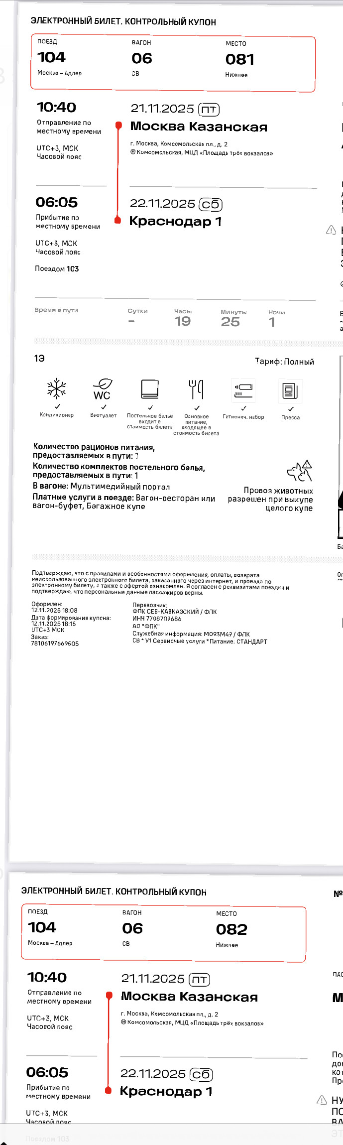 Двухэтажный поезд Москва-Адлер №104В/104Ж