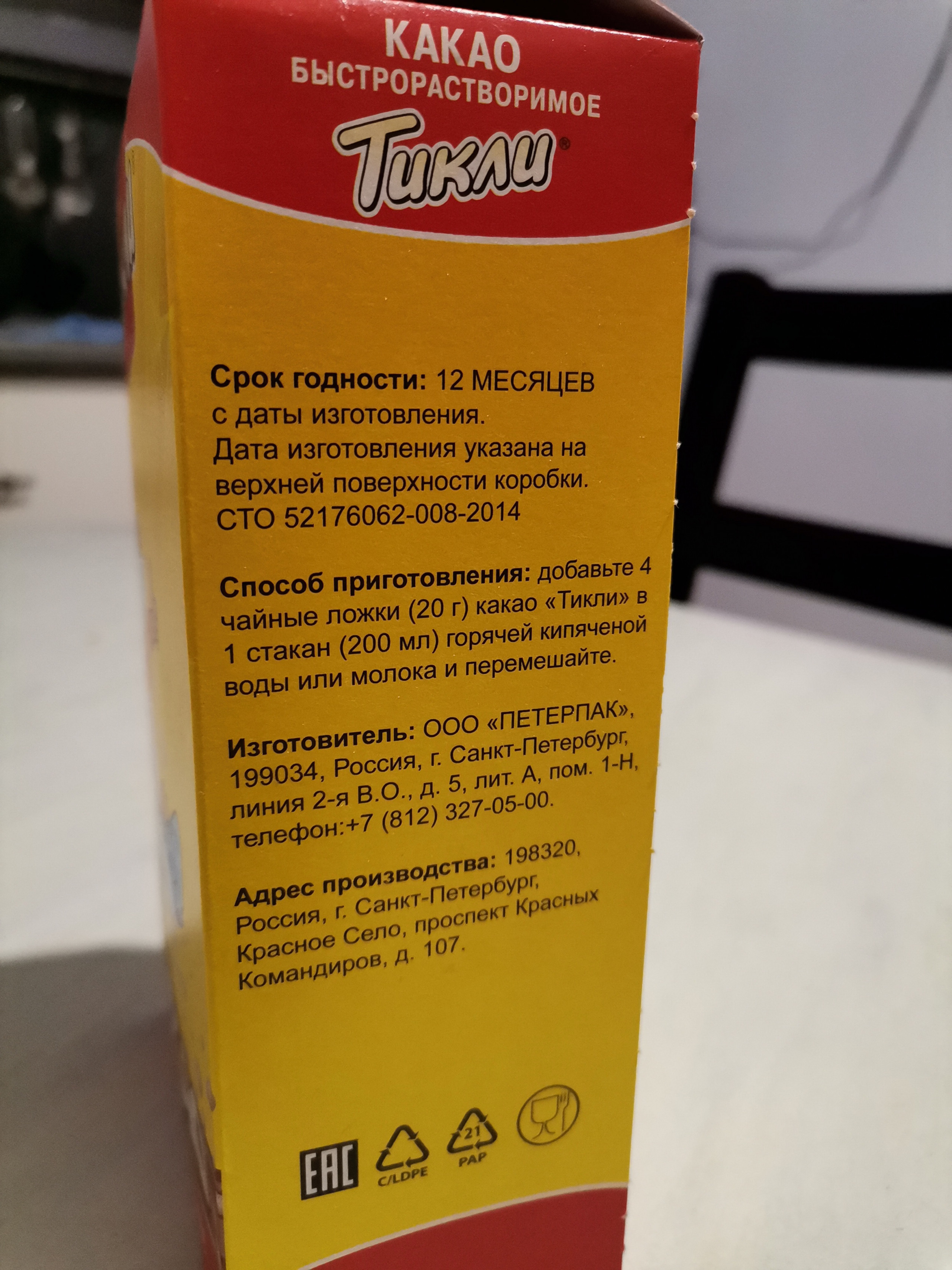 Какао быстрорастворимый Петерпак "Тикли"