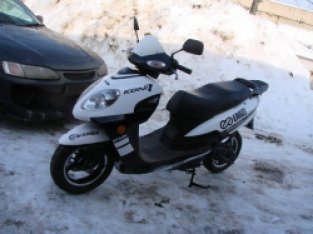Купил я данную технику, когда мне было 16 лет. По началу казался этот скутер очень большим и плохо управляемым, хотя я сам не маленький и не слабый уже был. Но это было только первое впечатление. Не смотря на его 49. 9 кубовый мотор, а также внушительные габариты, на удивление всех он оказался довольно шустрым и сравнительно быстро набирает обороты. Также его спокойно можно разогнать до 100 километров в час, но больше уже не рискнул, на такой скорости управление на нем не очень, да и дорога оставляла желать лучшего. По управляемости, а также на разворотах ему можно спокойно поставить твердую 5, так как он хоть и весит 150 килограмм, но сам по себе он маневренный. За три года его использования переделал в нем практически все на свой лад, а также по мере надобности замены запчастей, особенно когда они отваливались. Практически все запчасти спокойно можно найти в каждом магазине по продаже запчастей для мототехники, запчасти все ставил оригинал, и цена на них не высокая. Сам ремонт занимает достаточное количество времени из - за того, что все агрегаты практически слеплены в один большой ком, к которому тоже сложно подлезть из за пластиковых обвесов. В общем, за эти три года накатал на нем 7000 километров, и не разу не пожалел, что тогда купил его.